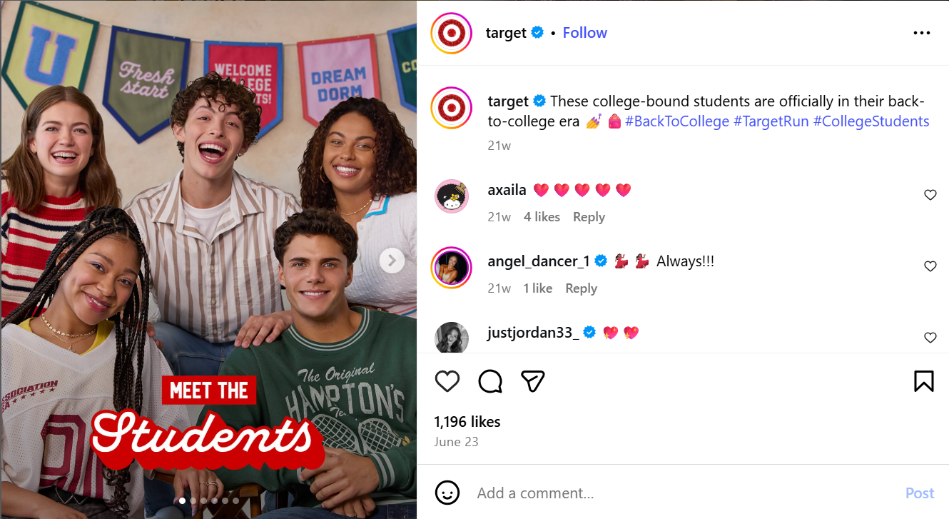 Social media assets created in Photoshop. This was in tandem with helping to create a brand identity for Target's Back to College Campaign